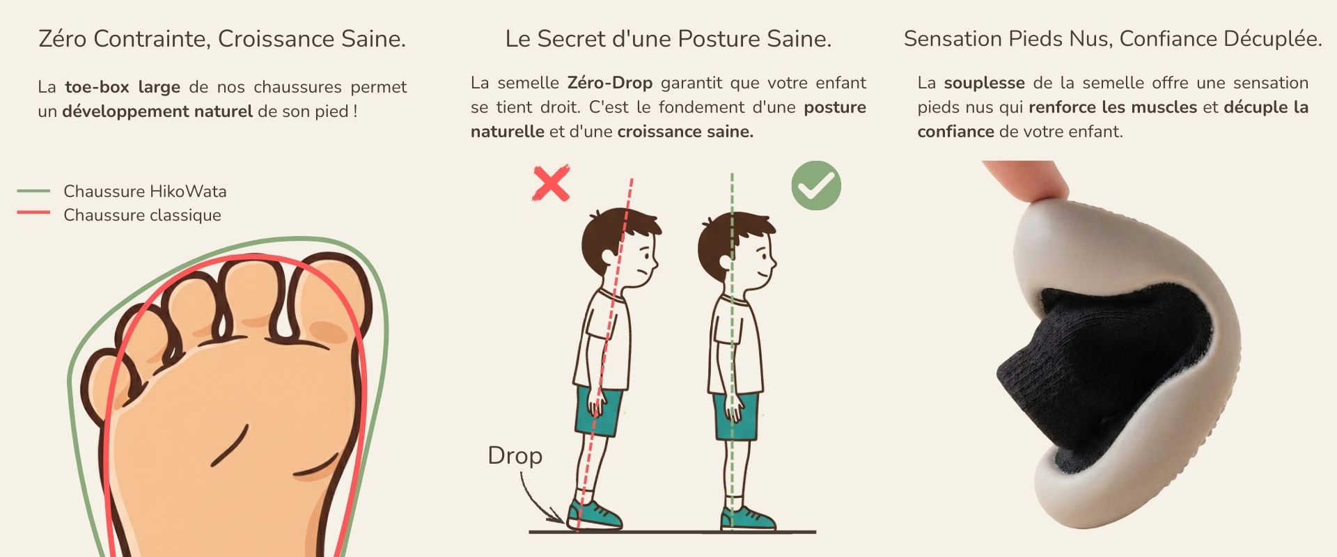 Nos best sellers ne sont pas seulement appréciés — ils sont pensés pour accompagner votre enfant vers une marche plus stable, une posture plus naturelle et une confiance qui grandit de jour en jour. Chez HikoWata, notre mission est d’aider chaque petit explorateur à développer son équilibre, sa motricité et sa liberté de mouvement, en respectant son rythme.